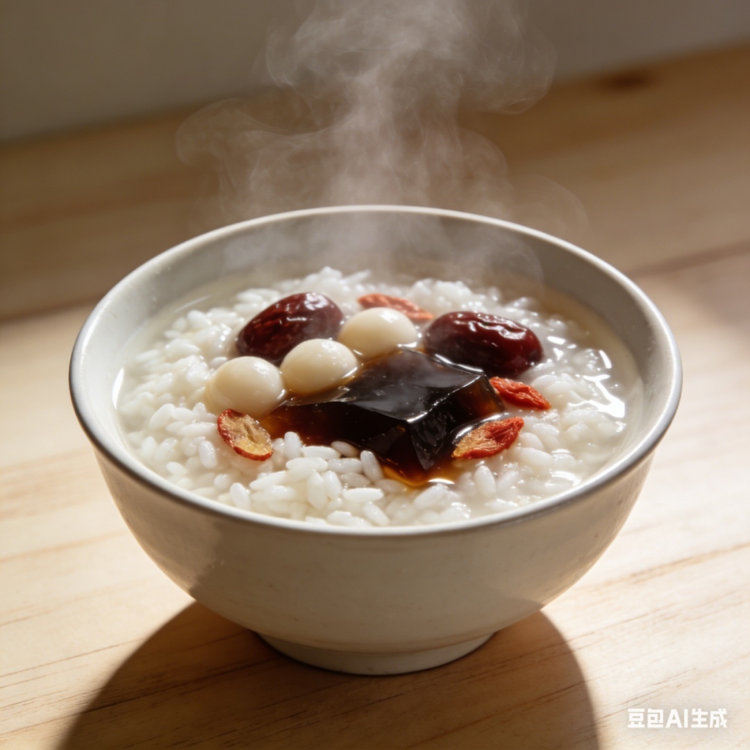 做法:先用糯米煮粥,待粥将煮熟时,放入阿胶,边煮边搅匀,稍煮二三沸加入少许红糖即可。